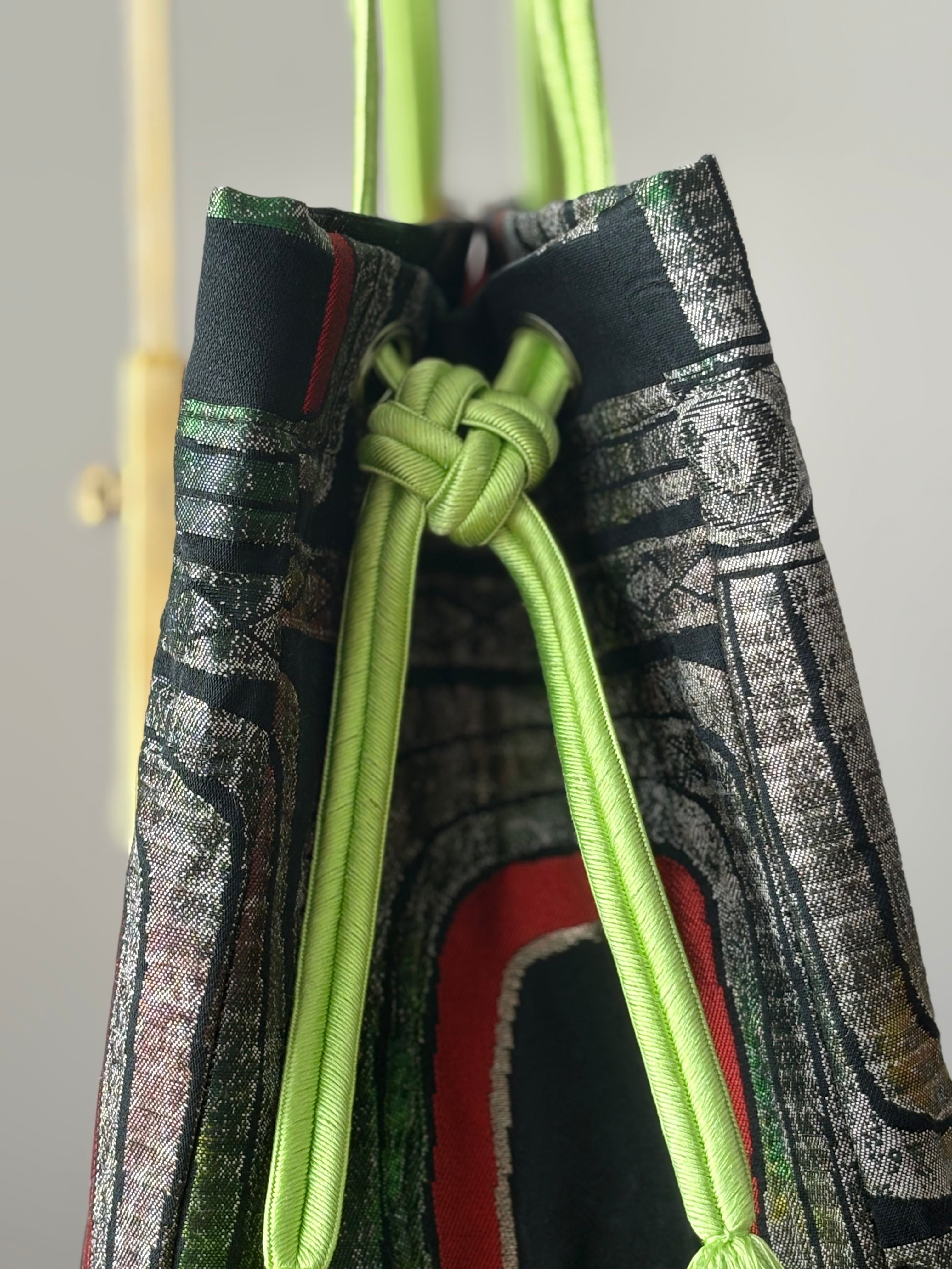 このバッグの最大の特徴は、持ち手に施された「叶結び(かのうむすび)」です。
