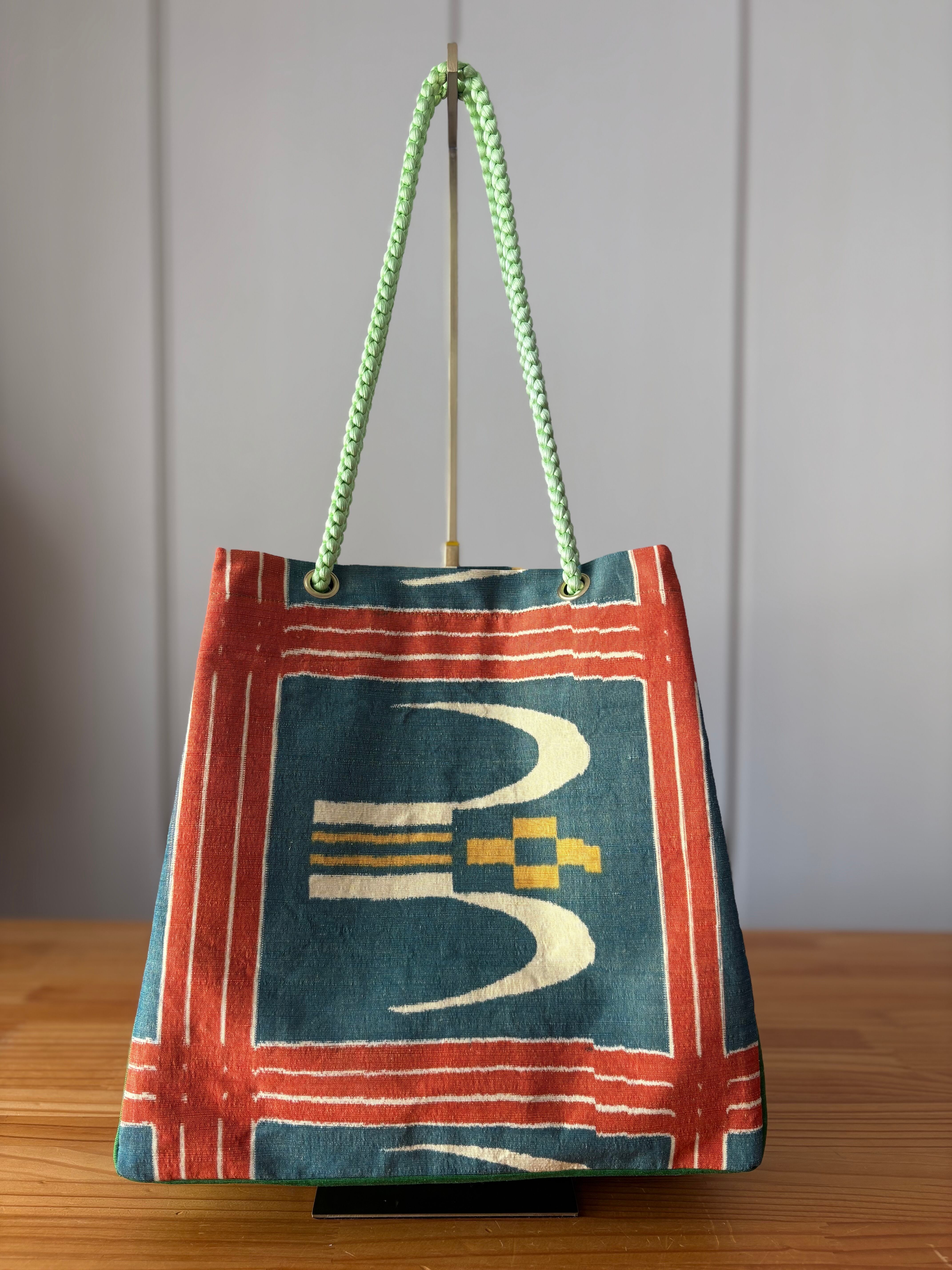 【叶 -kanae-】「レトロモダン」青磁色の幾何学帯トート