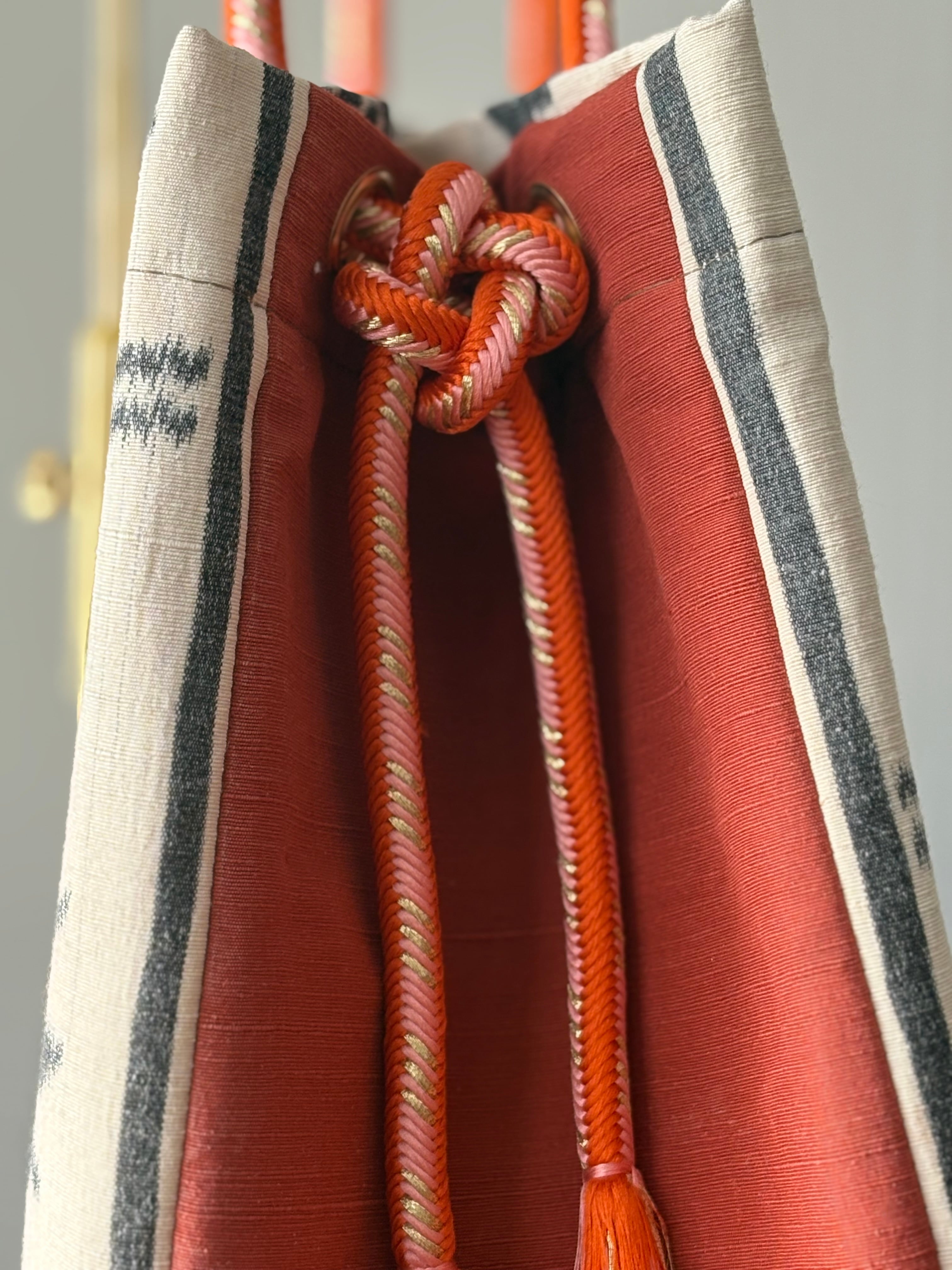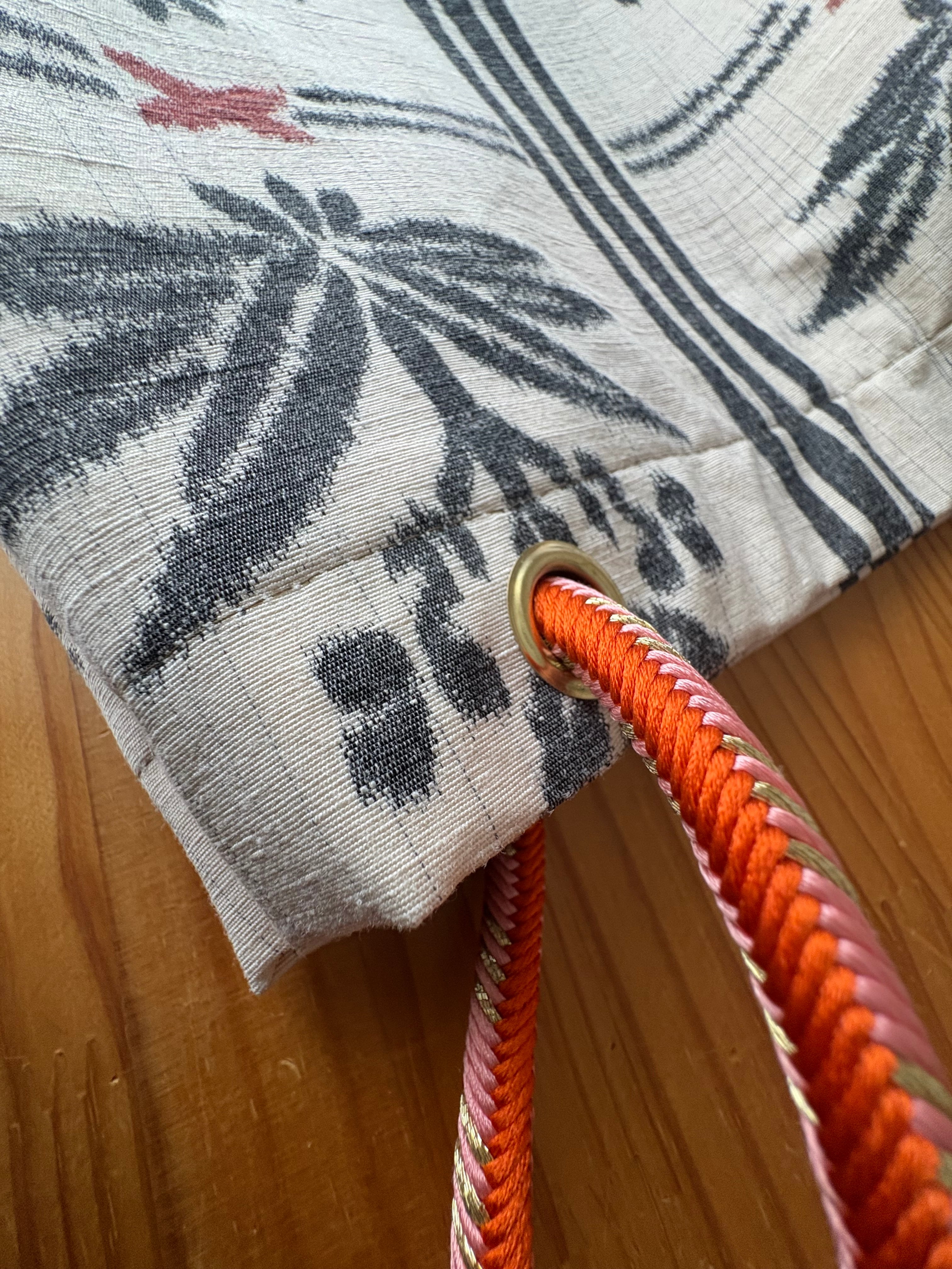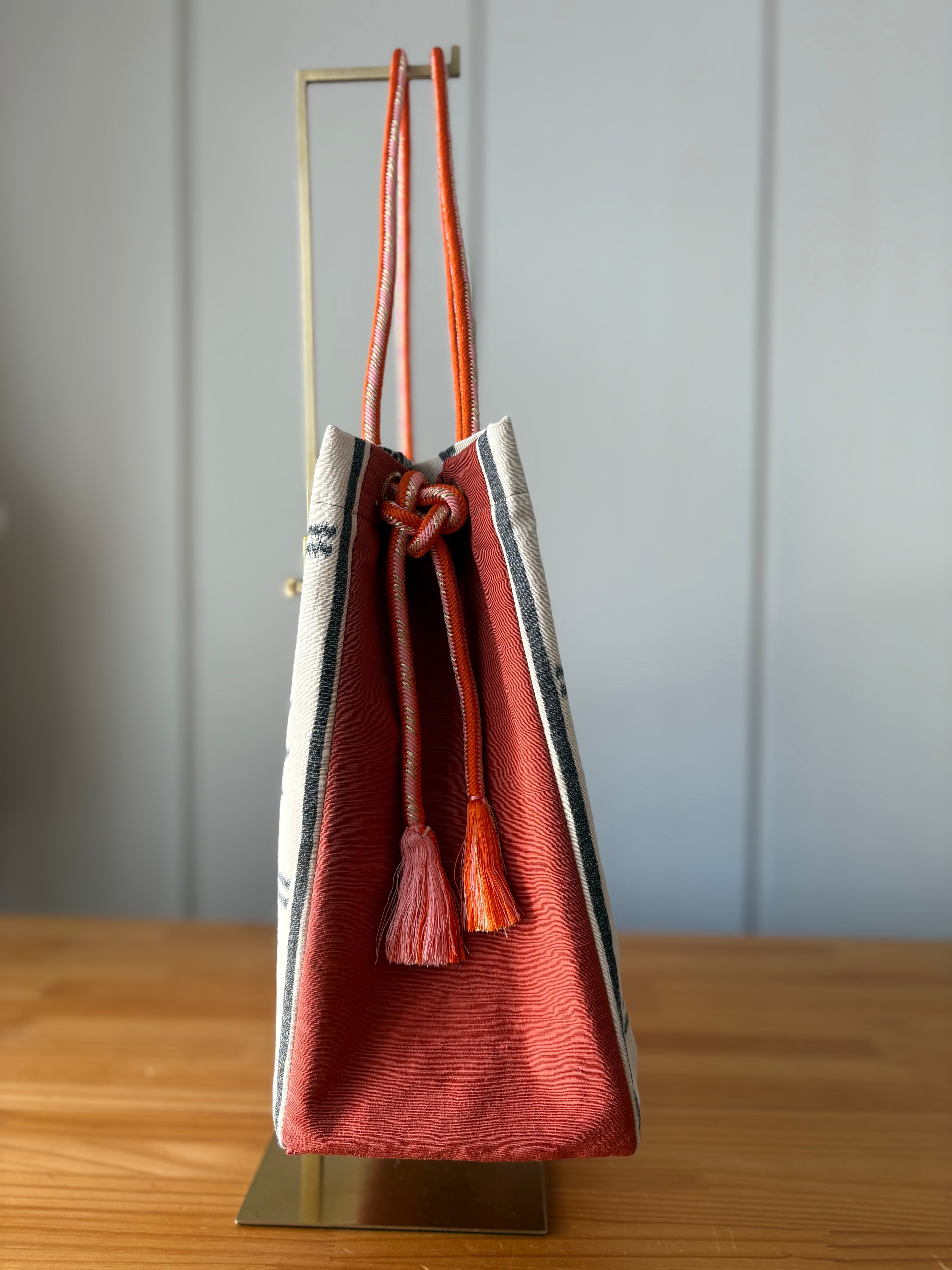 このバッグの最大の特徴は、持ち手に施された「叶結び(かのうむすび)」です。